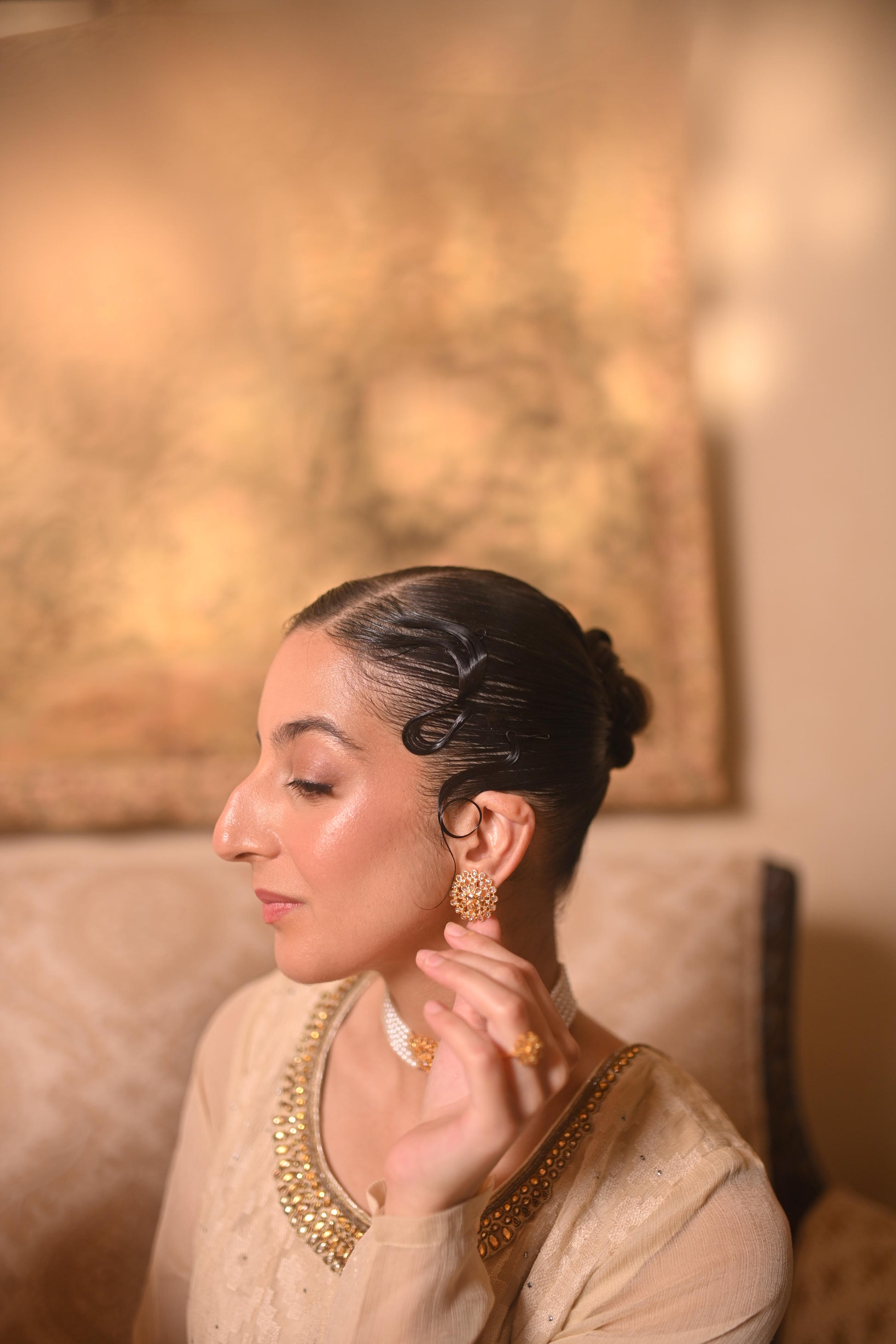 Pearl kundan studs crafted in traditional Pakistani style. Elegant, heirloom-inspired earrings for weddings and festive occasions.